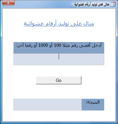 مثال على توليد أرقام عشوائية Randomize 8 سبتمبر 200915 سبتمبر 2009 Kuwait10 أمثلة ودروس وتلميحات Microsoft Office AccessMicrosoft Office Access 2007 بواسطة هذا المثال المرفق تستطيع توليد أرقام عشوائية تبدأ من رقم 1 إلى أي رقم آخر يحدده المستخدم بواسطة دالة Randomize. شارك هذا الموضوع: النقر للمشاركة على X (فتح في نافذة جديدة) X انقر للمشاركة على فيسبوك (فتح في نافذة جديدة) فيس بوك النقر لإرسال رابط عبر البريد الإلكتروني إلى صديق (فتح في نافذة جديدة) البريد الإلكتروني اضغط للطباعة (فتح في نافذة جديدة) طباعة اضغط لتشارك على LinkedIn (فتح في نافذة جديدة) LinkedIn اضغط للمشاركة على Pinterest (فتح في نافذة جديدة) Pinterest اضغط للمشاركة على Tumblr (فتح في نافذة جديدة) Tumblr اضغط لمشاركة الموضوع على Reddit (فتح في نافذة جديدة) Reddit إعجاب تحميل... مرتبط