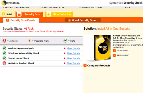 لا تقلق، فخدمة Symantec Security Check ستخبرك بالإجابة، كل ما تحتاج إليه هو الدخول إلى موقعهم من خلال Internet Explorer، وخلال دقائق معدودة ستظهر النتيجة.
