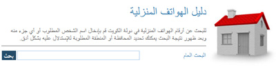 دليل الهواتف المنزلية: للبحث عن أرقام هواتف منازل الأشخاص، عن طريق إدخال الإسم أو أي جزء من الإسم، كما يمكن حصر نتائج البحث حسب المحافظة أو المنطقة.