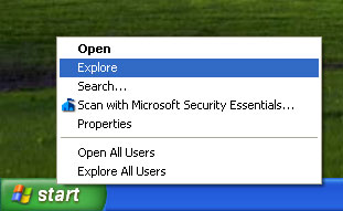 1. أنقر بالزر الأيمن للفأرة على قائمة إبدأ Start Menu ثم انقر فوق أمر Explore.