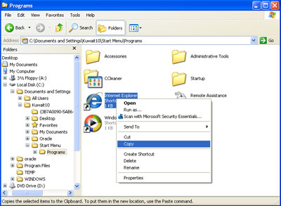 3. إنسخ ملف اختصار البرنامج المطلوب تشغيله تلقائيا.