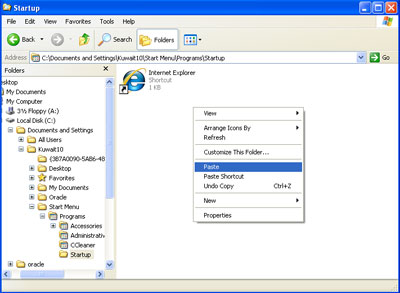 4. إلصق اختصار البرنامج في مجلد البداية والذي ستجده باسم (Startup).