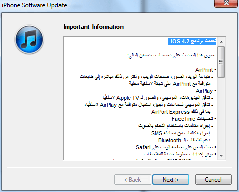 لم أكن أتوقع أن عملية تحديث جهاز iPhone ستكون سهلة للغاية، والشكر للمدون الصديق “أبو فلان” الذي أرشدني إلى الطريقة الصحيحة. وتعميما للفائدة فيما يلي خطوات تحديث Software الخاص بجهاز iPhone بالصور: