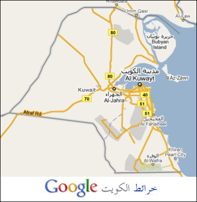 شغلت Google مؤخرا نطاق الخرائط لدولة الكويت ولعشرة دول أخرى في الشرق الأوسط وأفريقيا، وتوفر خدمة الخرائط المحلية من Google تجربة استخدام أفضل خاصة في مجال البحث والعثور على الشوارع والطرق والأنشطة التجارية.