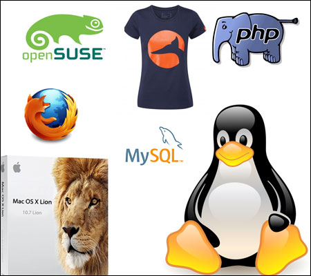– على صعيد البرمجيات المفتوحة المصدر، قاعدة بيانات MySQL (أشهر قاعدة بيانات علائقية مفتوحة المصدر) تتخذ من الدلفين شعارا لها، كما أن شعار لغة البرمجة PHP سابقا هو الفيل.