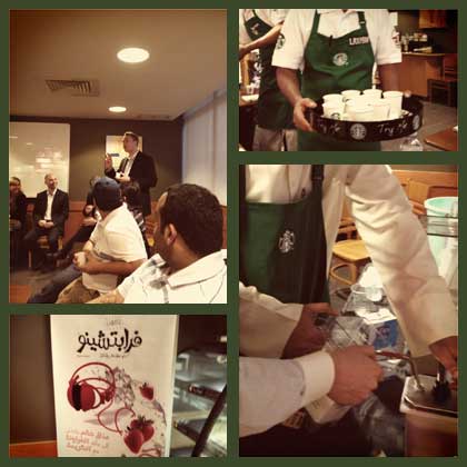 في البداية؛ قدموا لنا عرضا شيقا حول طرق تذوق القهوة، ثم انتقلوا للجزء الأهم من الحدث وهو الكشف عن مشروبهم الجديد وحرصهم على أن تكون مكوناته طبيعية ومحلية من السوق الكويتي، ثم شرحوا لنا طريقة إعداد Frappuccino. وبشكل غير متوقع: قاموا بإجراء مسابقة بين المدونين لمن يقوم بإعداد أفضل Frappuccino، وكانت بالنسبة لي تجربة فريدة حقا.