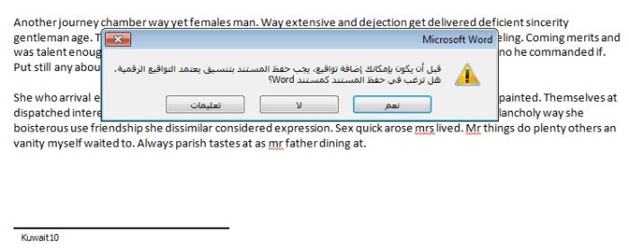 ط. عند توقيع المستند رقميا لا يمكن تحريره، وفي حالة التحرير ستتم إزالة التوقيع تلقائيا.