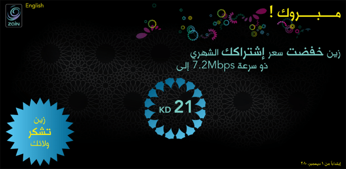 فاجأتني “زين” اليوم بهذه الرسالة: “مبروك! زين خفضت سعر إشتراكك الشهري ذو سرعة 7.2Mbps إلى 21 KD”، لا أعلم كيف ظهرت لي هذه الرسالة أثناء تصفحي الويب ولكن “مقبولة”، علما بأن السعر السابق للإشتراك الشهري لسرعة 7.2 كان 27 دك، وأعتقد أن زملينا “المدون” حصل على مفاجأة من نوع آخر من شركة زين.