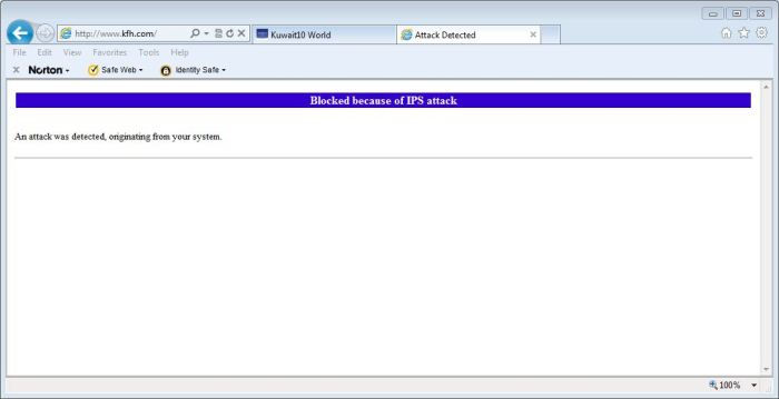 “An attack was detected, originating from your system.”